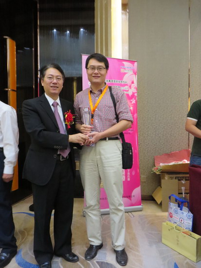盧其福副總經(jīng)理、總工程師與二等獎(jiǎng)獲獎(jiǎng)?wù)呲w新廣教授合影